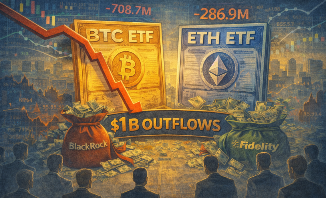 Bitcoin, Ether ETFs see around $1B in outflows as macro volatility spurs risk reduction