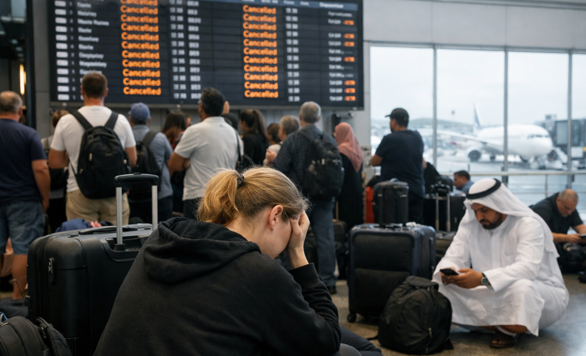 Key transit hubs such as Dubai, Abu Dhabi, and Doha saw cancellations and operational delays as airlines adjusted schedules.